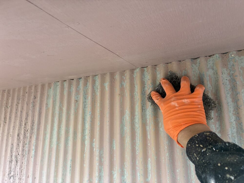 ケレン作業とは、塗装の前処理として行う素地調整のことです。古い塗膜やサビ、汚れを取り除くことで塗料の密着性が高まります。