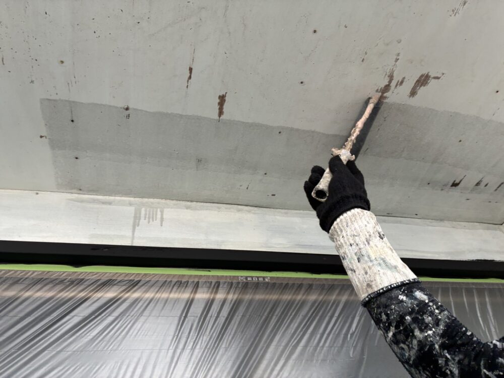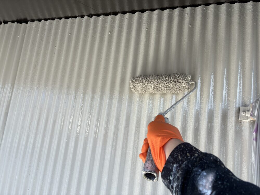 【上塗り】塗料の性能を発揮できる膜厚にし、耐久性とツヤを高めるため、必ず弊社では上