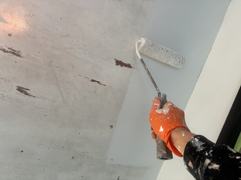 【下塗り】旧塗膜と次に塗る中塗りとの密着性や、隠蔽性を高めるため、中塗り材を塗る前