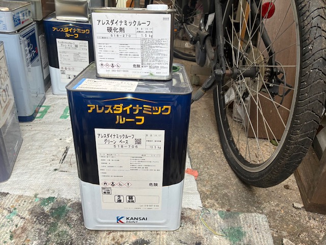 【上塗り材】(屋根)には、ダイナミックルーフ グリーンベースを使用しています。