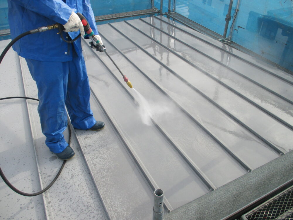 高圧洗浄機を使って、外壁や屋根に長年蓄積された頑固な汚れや埃を除去します。