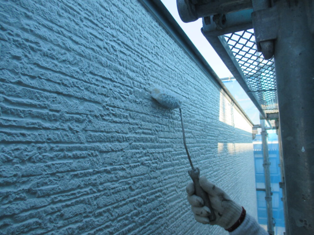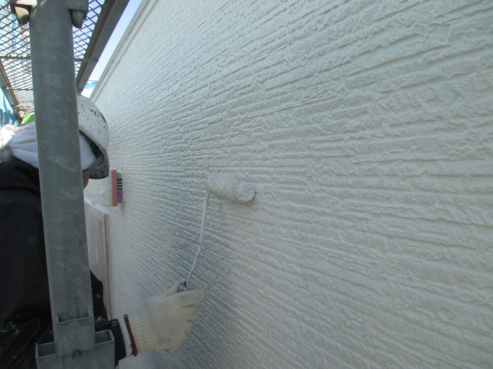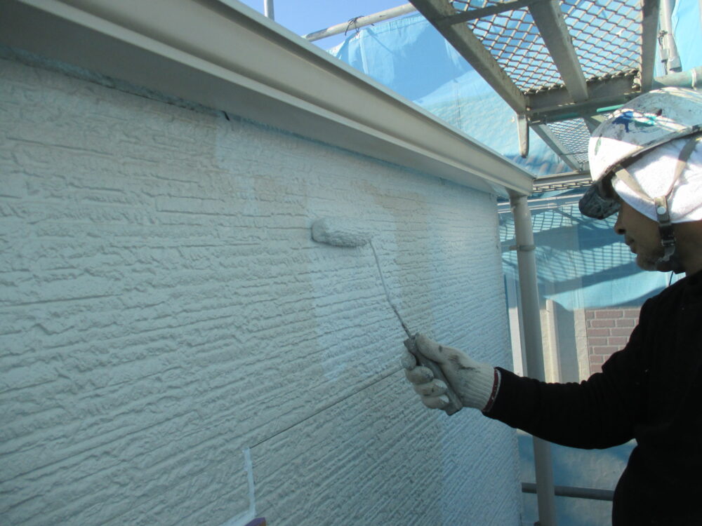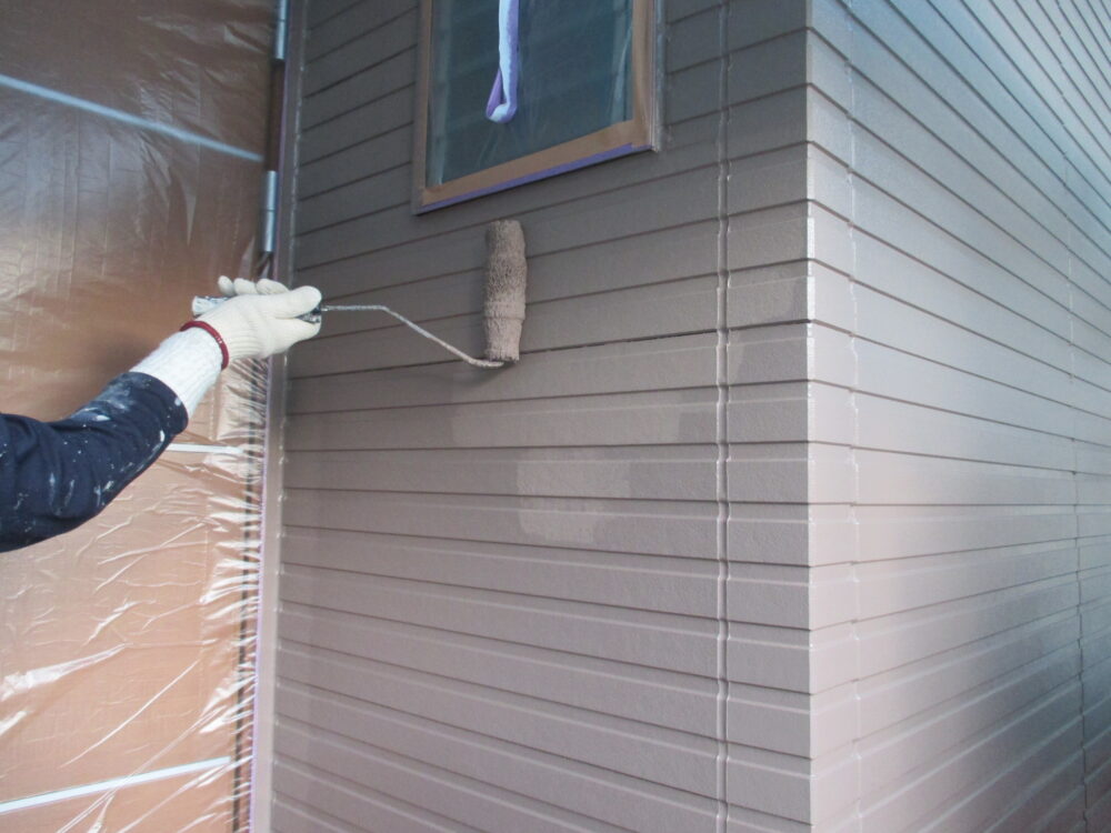 【上塗り】塗料の性能を発揮できる膜厚にし、耐久性とツヤを高めるため、必ず弊社では上