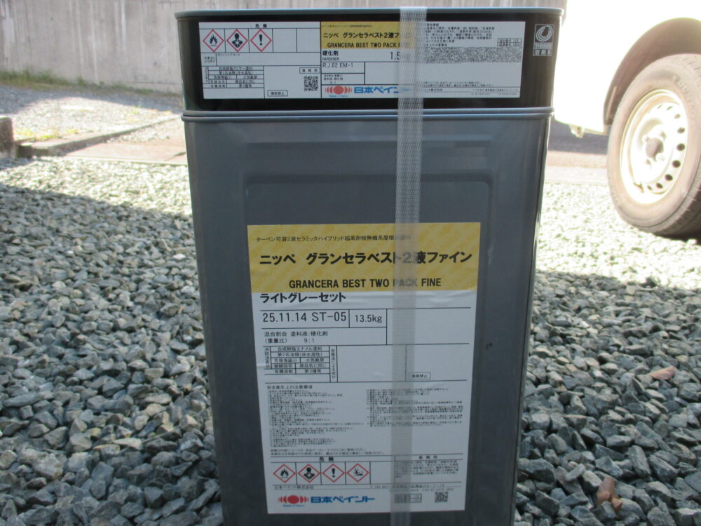 【上塗り材】(屋根)には、グランセラベストファイン ライトグレーを使用しています。