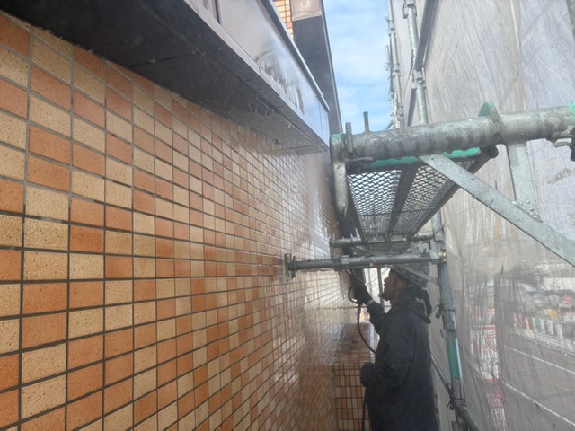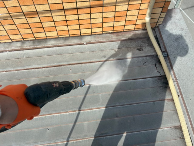 高圧洗浄機を使って、外壁や屋根に長年蓄積された頑固な汚れや埃を除去します。