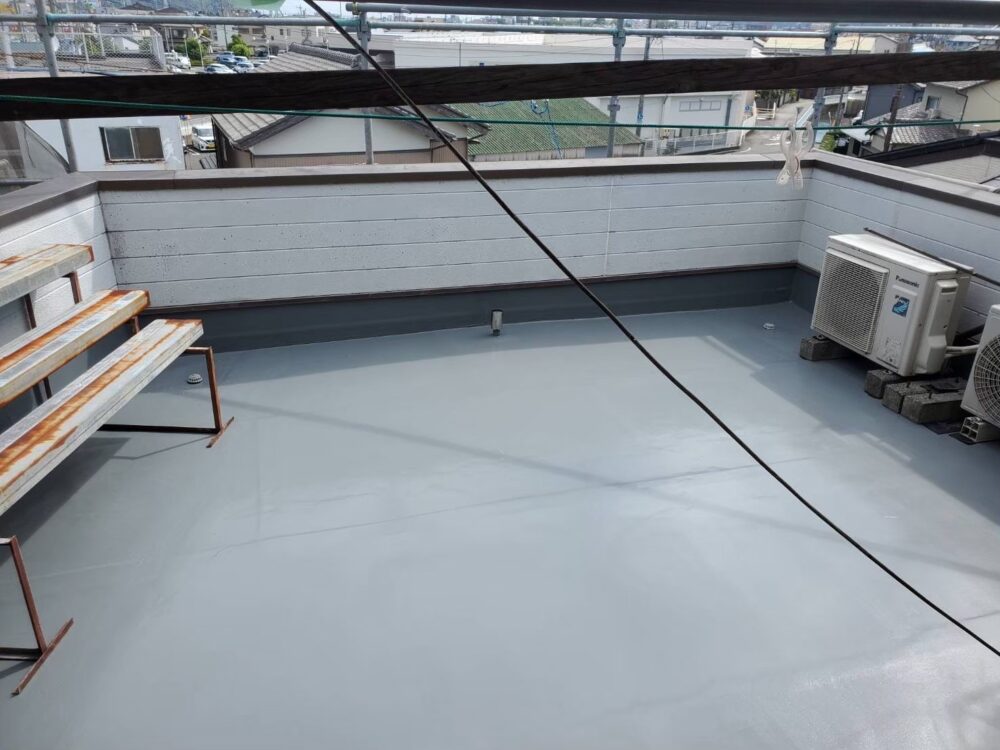【上塗り】塗料の性能を発揮できる膜厚にし、耐久性とツヤを高めるため、必ず弊社では上